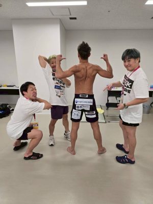 → 社名ロゴ入りのトランクスがリングで輝く瞬間。社員一同、画面越しに声援を送りました!🔥
