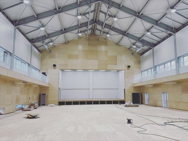 都内のE学校の体育館にてクリアー塗装施工しました。