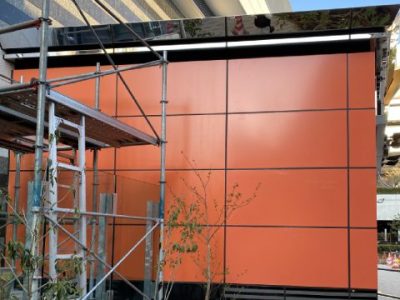都内のMビルにてイタリア左官によるキレイな仕上げを行っています。